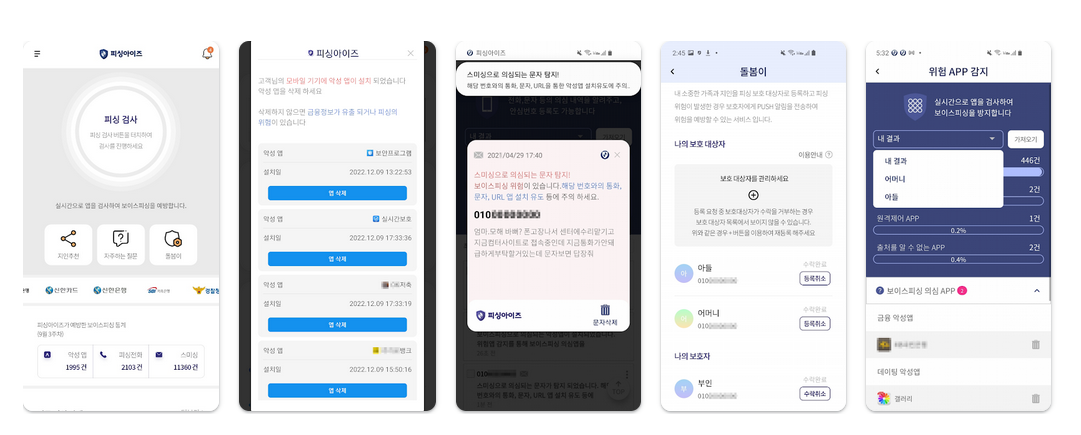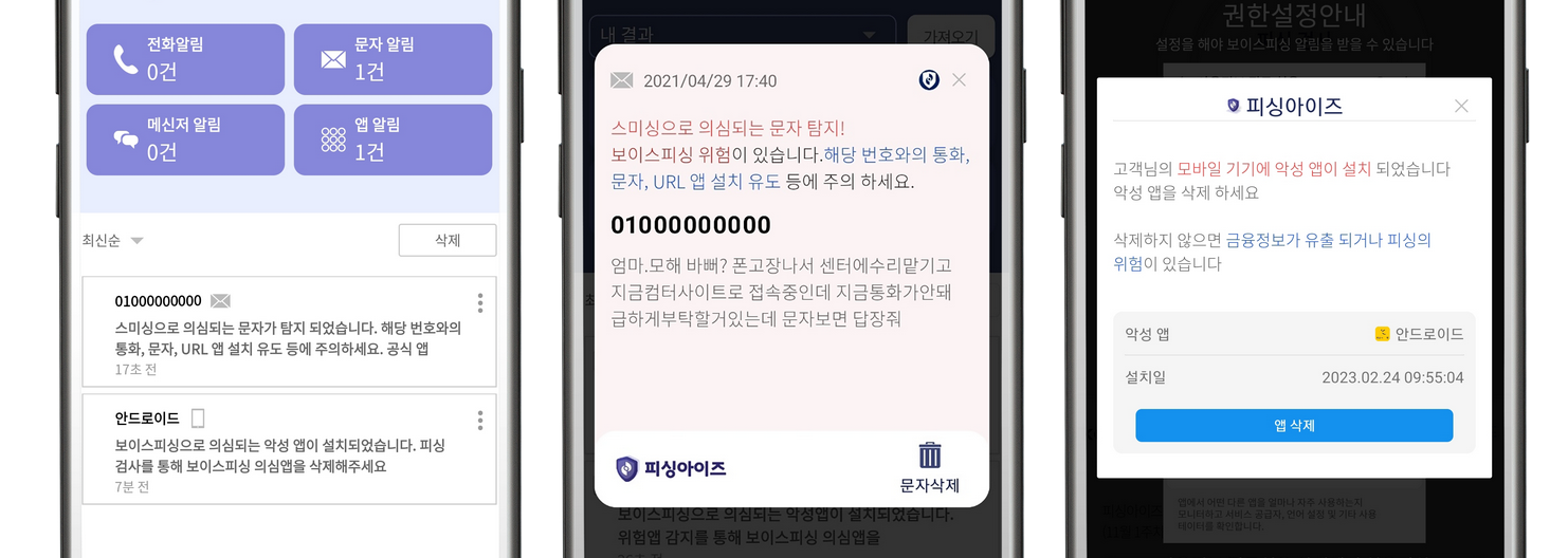 악성 앱을 신속하게 삭제하여 금융사기 피해 예방 실시간으로 보이스피싱 전화를 감지하고 사기 전화 차단 스미싱 문자를 자동 분석하여 사용자가 사기 피해를 입지 않도록 보호 최신 보안 업데이트를 통해 새로운 금융사기 수법으로부터 방어