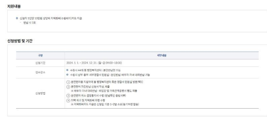 - 대부분의 지자체에서 10만원 상당의 교통카드 또는 지역 상품권 제공