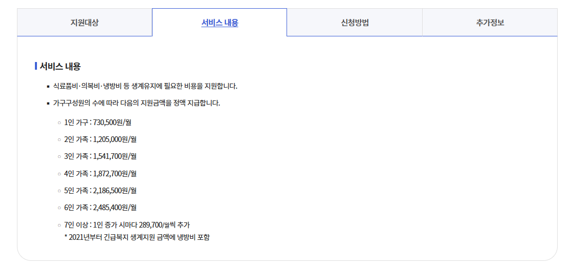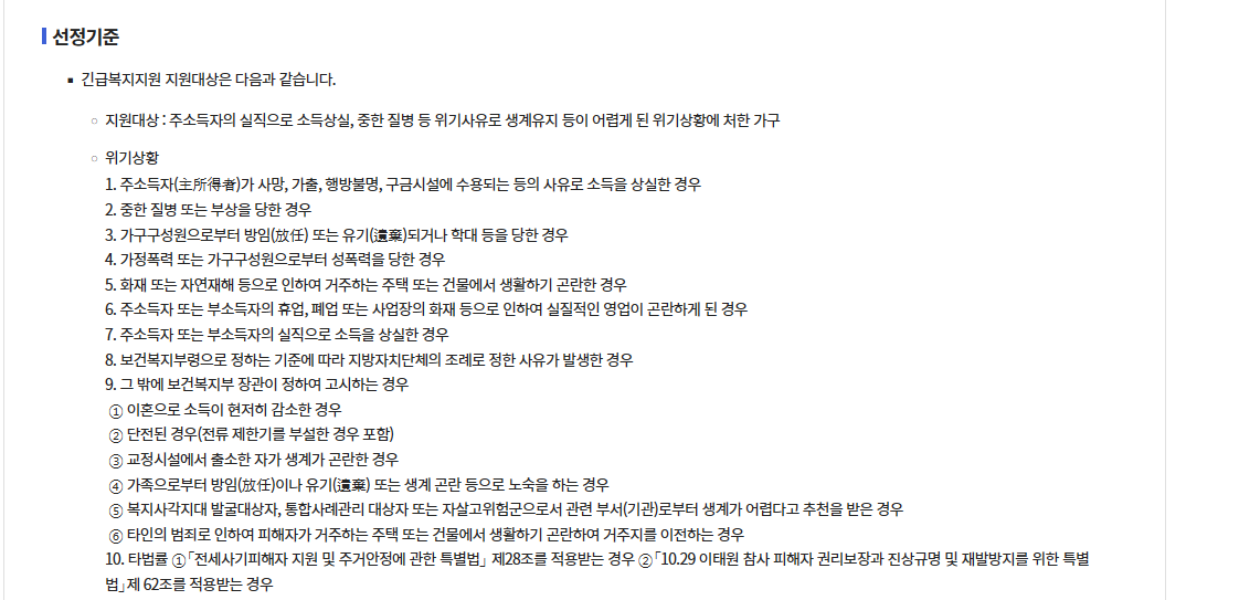 긴급복지 생계지원금의 지원대상