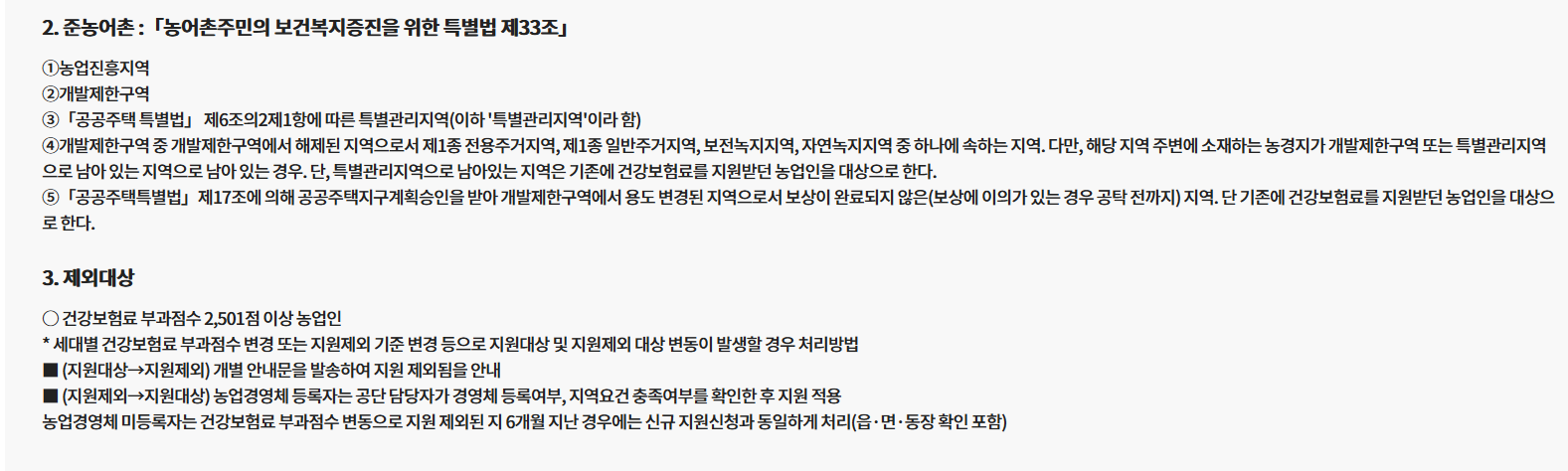 - 기존에 건강보험료 지원을 받은 경력이 있는 경우, 일부 요건을 갖춘 개발지역도 포함