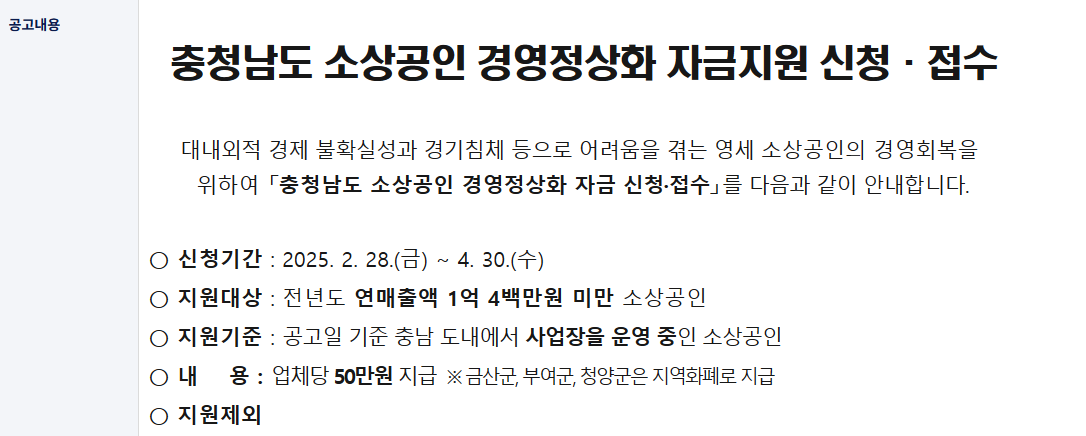 충청남도 관계자는 "경기 침체와 내수 회복 지연으로 인해 여전히 어려움을 겪고 있는 도내 소상공인들이 많은 만큼, 이 자금 지원을 통해 조금이나마 경영에 도움이 되기를 바란다"며 "더 많은 분들이 신청할 수 있도록 홍보와 지원에 최선을 다하겠다"고 전했습니다.