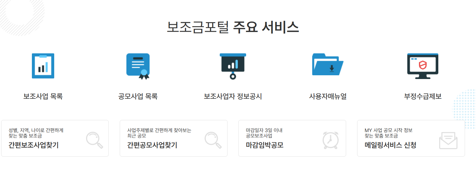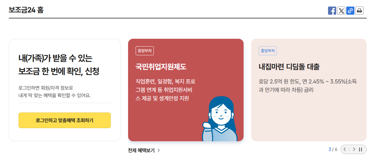 보조금24 홈페이지 주요 기능