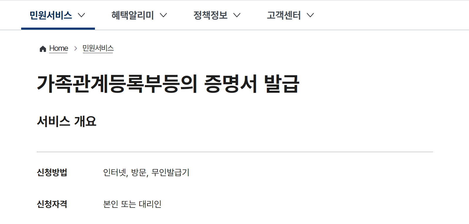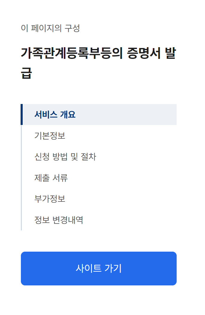| 발급 사이트 | 정부24 및 전자가족관계등록시스템 |