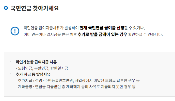 또한 국민연금 과오납금 조회 뿐만 아니라, 미수령 국민연금 환급금도 조회 가능하니 많은 이용 바랍니다.