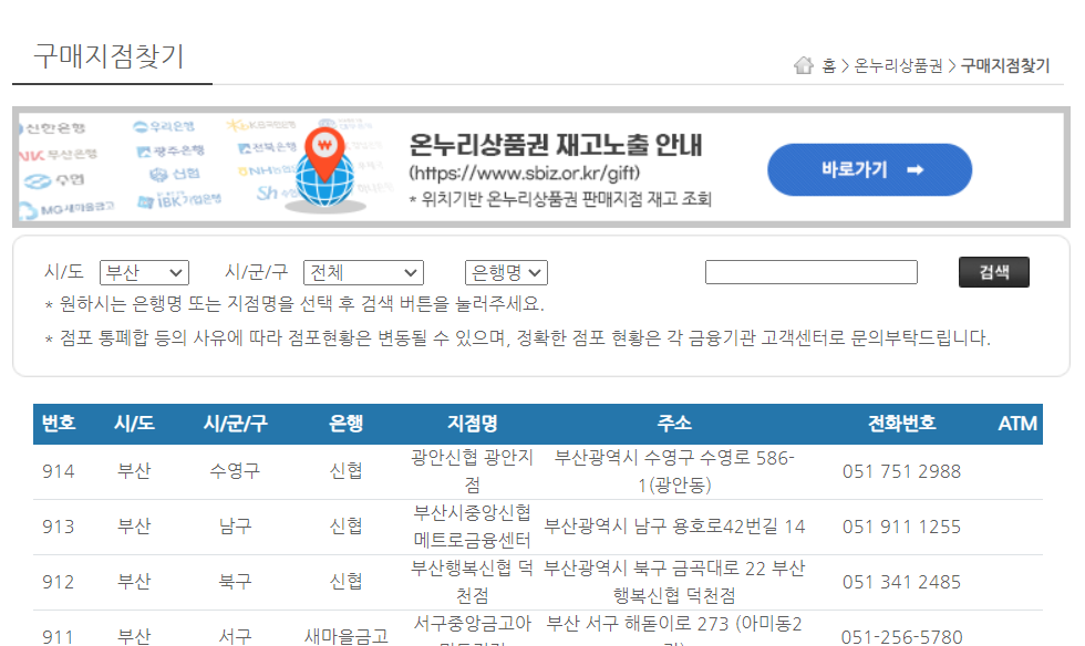 온누리 상품권은 재고가 조기 소진될 수 있으므로 구매 전 내 근처 점포의 재고수량을 확인하고 가야합니다.