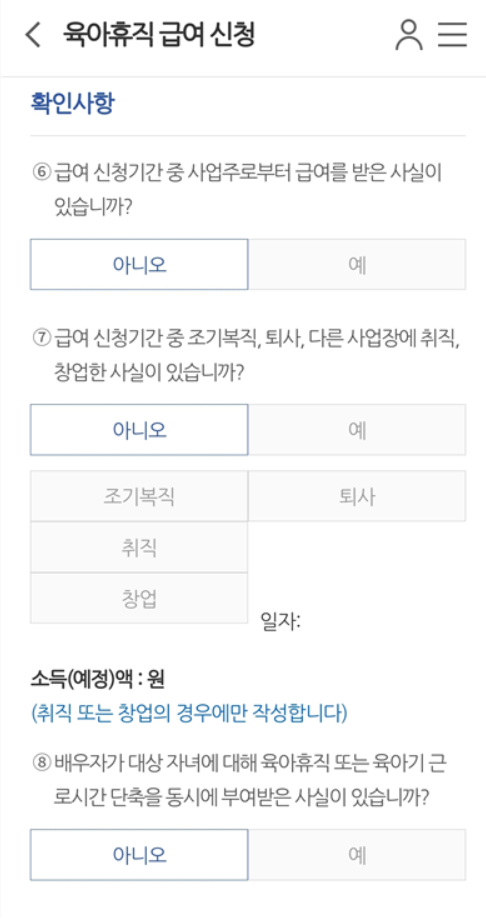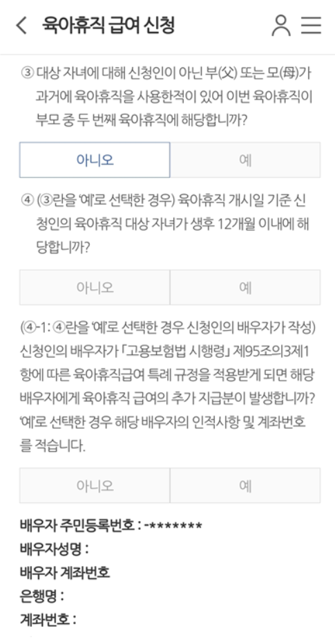 - 예시1) 1월이 지나고 2월 1일이 되면 1월달 분의 육아휴직 급여 신청 가능