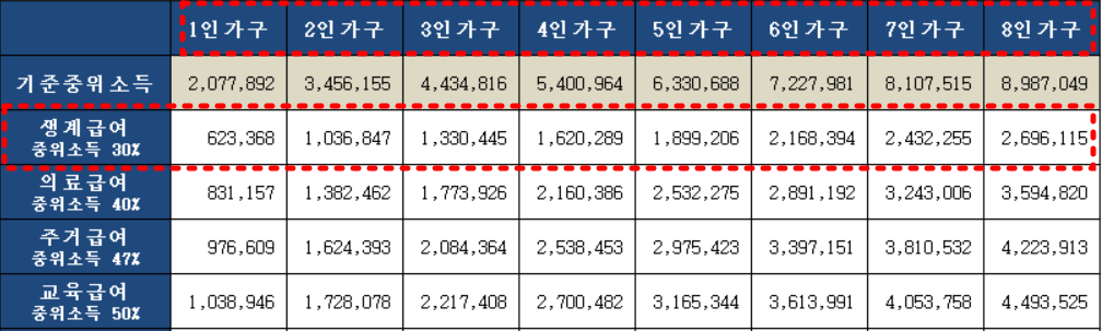 👉주거급여 소득기준