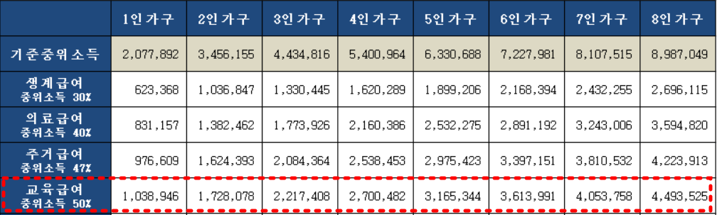 👉교육급여 소득요건