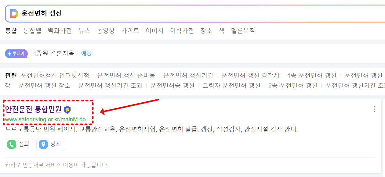 검색창에 '운전면허 갱신'을 검색하여 온라인 갱신페이지로 접속해 줍니다. 또는 바로가기를 눌러 바로 이동해도 좋습니다.