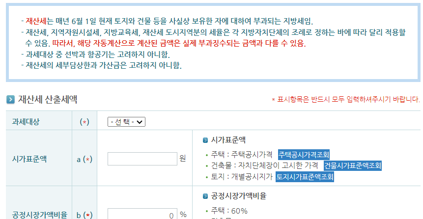 지역 자원시설세, 지방 교육세, 재산세 도시지역분의 세율 또한 해당 원칙에 따라 달라질 수 있습니다. 그러므로 자동계산으로 나온 금액과 실제 부과되는 금액 사이에 차이가 있을 수 있다는 점도 알아두세요.