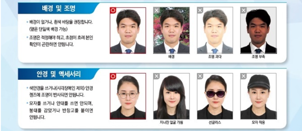 - 모자나 안대, 진한 색안경, 붕대 등 얼굴을 가리는 사진은 불가합니다.