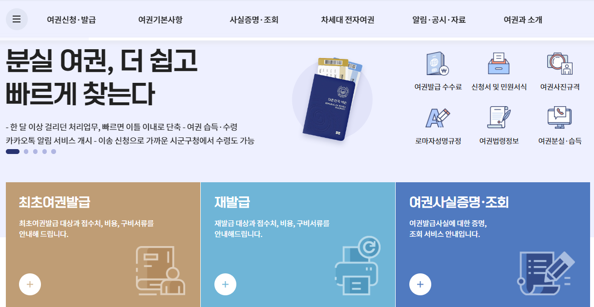 여권 발급 신청 및 준비물에 대해서 궁금하신 분은 마찬가지로 외교부 여권안내 홈페이지에서 이를 확인 가능한데요,