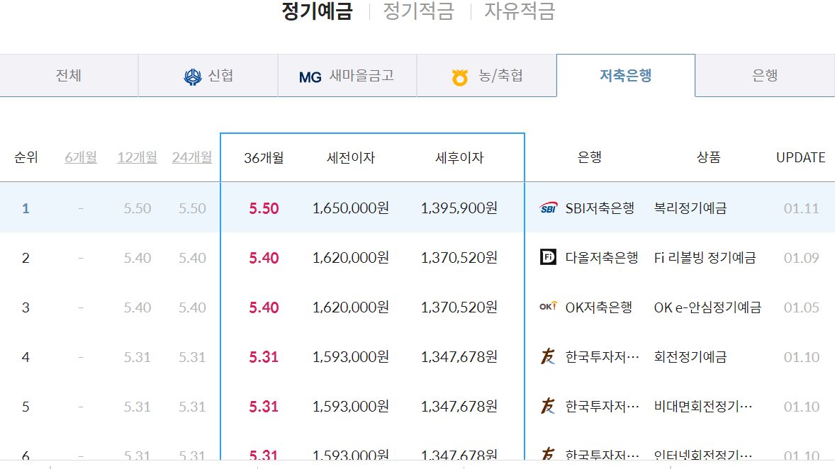 - 대백저축은행 / 5.4% / 정기예금 / 대백저축은행