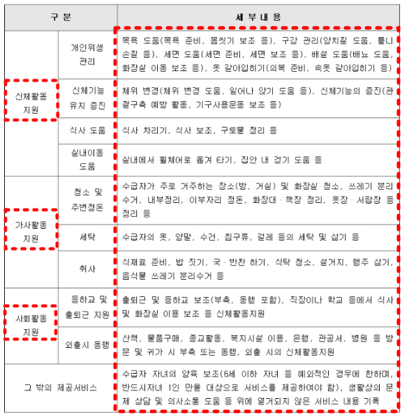 목욕이나 간호, 기타 활동지원과 같으며 참고하세요.