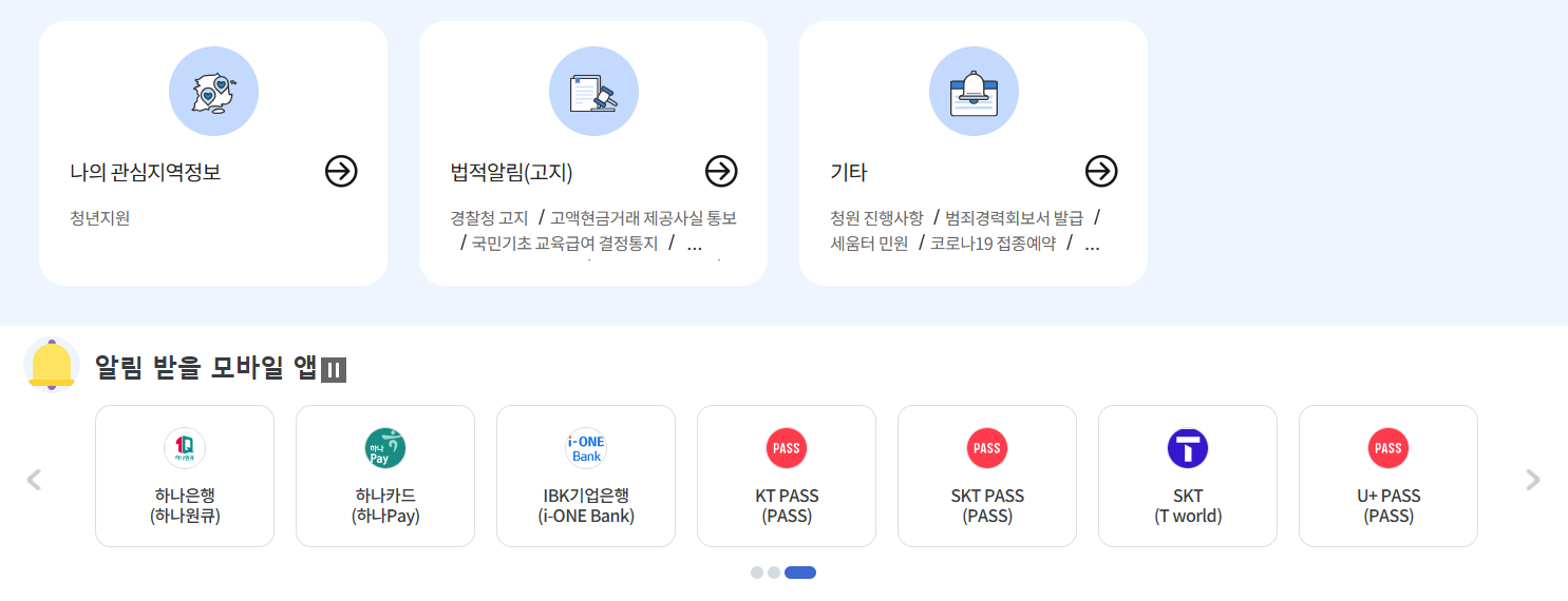 로그인 후, 메인 화면에서 '국민비서 구삐 알림서비스' 메뉴를 찾을 수 있어요. 클릭해서 들어가시면 신청할 수 있는 화면이 나옵니다. 여기서 본인의 정보를 입력하고 신청하시면 됩니다.