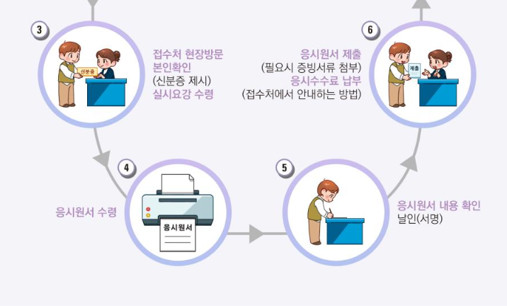 - 접수처에 방문하여 원서 작성 및 제출