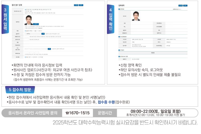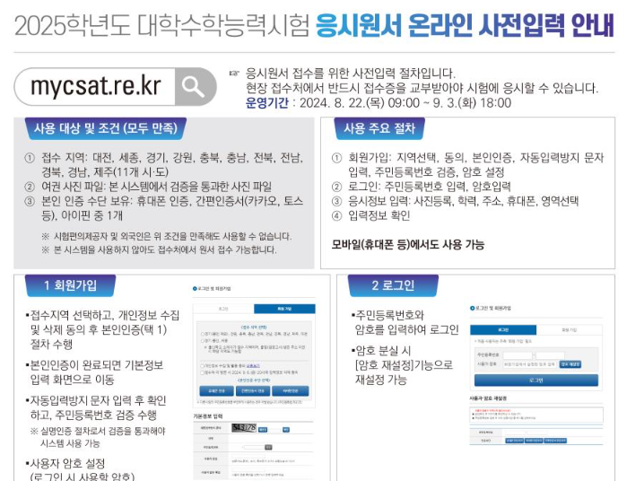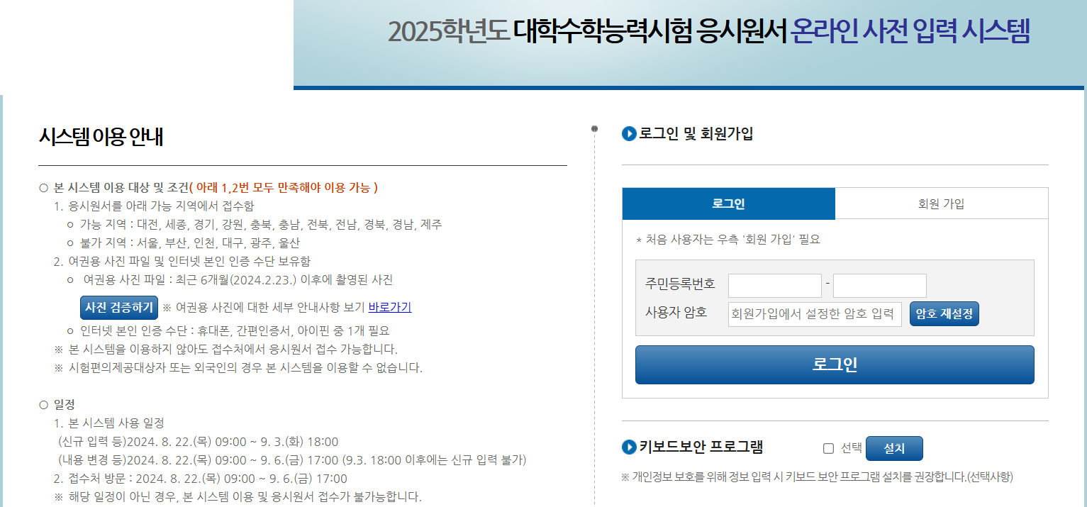 - 사전입력 사이트: KICE(한국교육과정평가원) 수능 원서접수 사이트