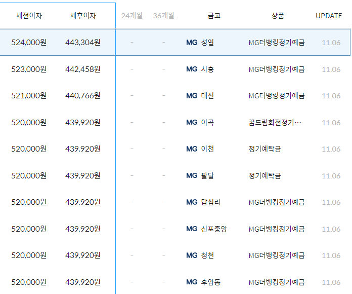 1. **MG주거래우대정기예금 (대신동)**