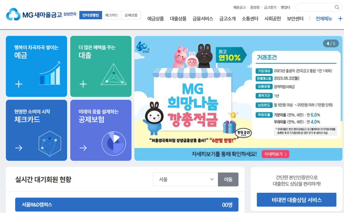 국내 예금기관 중에서 현재 유일하게 5%대 예금 금리를 제공하는 곳이 있습니다. 그 곳은 '새마을금고'입니다.