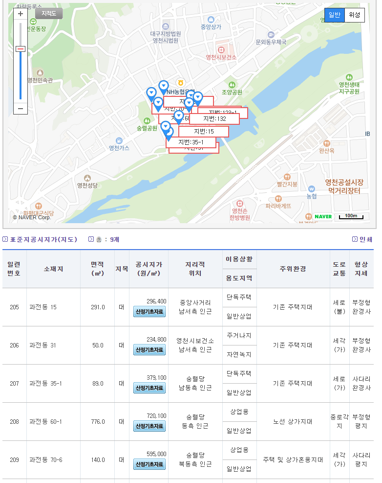 표준 공시지가 조회