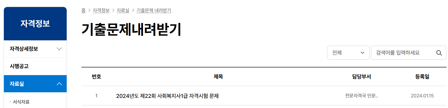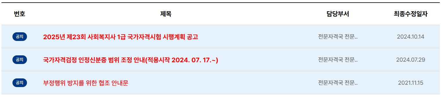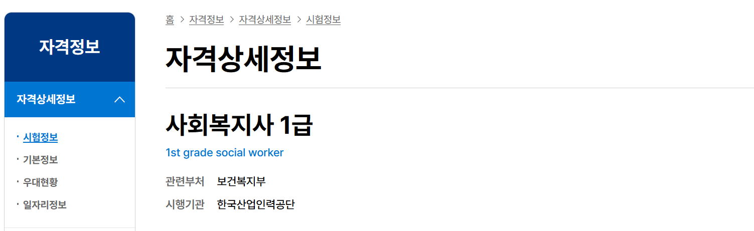 사회복지사 1급 시험일정 조회하기