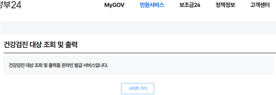 - ‘건강검진 대상 조회’ 메뉴로 이동합니다.